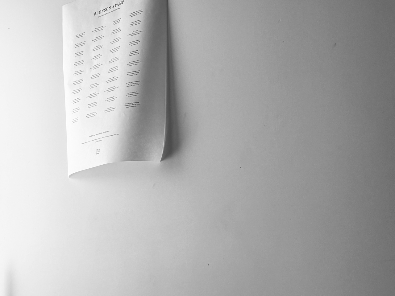Hello, and welcome. You are at Edition ⁘ of the website for the design + communication practice of Bronson Stamp, titled The Integration Of It All; or, Everyting At Once.I: skim, design, lead, research, write, creative direct. I use typography, text and messaging, materials, and placement to inform my primary executions. ➘ I work on/among: Identities; Books; Editorial; Communication Paths and Flows; Environmental; Iconography & Symbols; Models + Methodologies; Campaigns; Various Models; Communication Strategy; Writing. A selection of clients and brands I've worked include:IBM, Starbucks, New York Knicks, NewLab, The Beekman ∅ Guest Lectures: Pratt, The New School, Hofstra, FIT, SVA. This has been a contingent and continuous–or, living–space since 2009. This is Edition ⁘ | Latest alteration to this version: July1st in NY/C. Contact: bromarsta@gmail.com | New York, NY | Resume