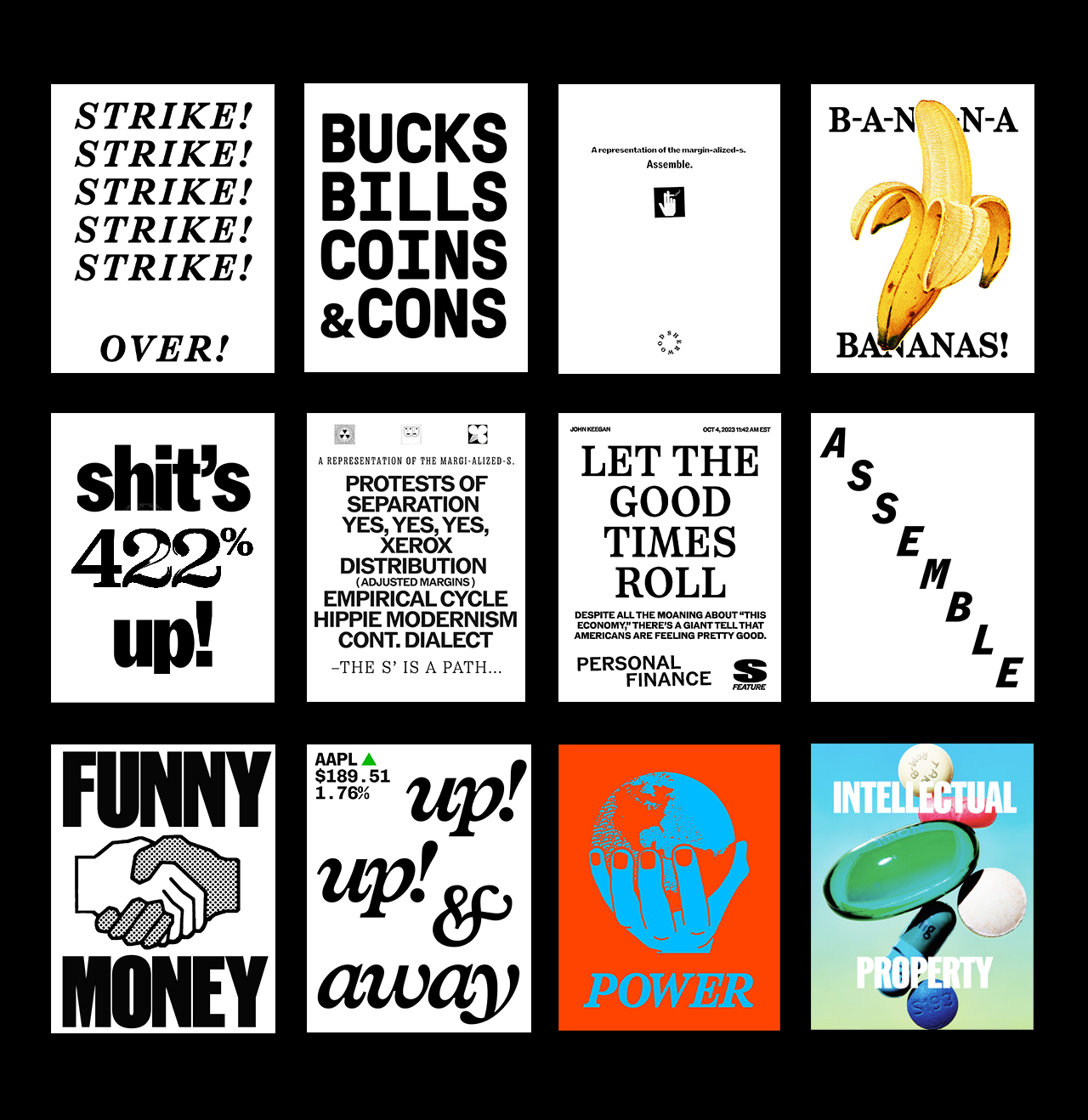 Most of which includes: Identities, Campaigns, Logos, Lines, Books, Sites, Stages, Spreads, Decks, Talks, XYZ, ETC.