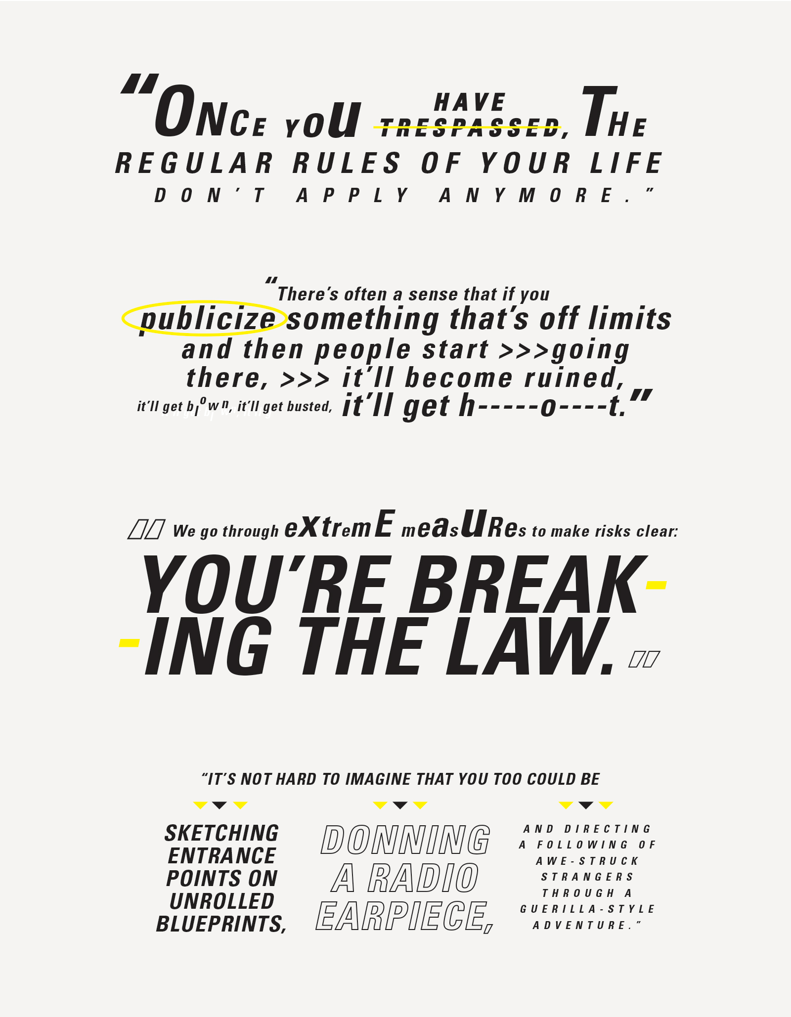 Hello, and welcome. You are at Edition ⁘ of the website for the design + communication practice of Bronson Stamp, titled The Integration Of It All; or, Everyting At Once.I: skim, design, lead, research, write, creative direct. I use typography, text and messaging, materials, and placement to inform my primary executions. ➘ I work on/among: Identities; Books; Editorial; Communication Paths and Flows; Environmental; Iconography & Symbols; Models + Methodologies; Campaigns; Various Models; Communication Strategy; Writing. A selection of clients and brands I've worked include:IBM, Starbucks, New York Knicks, NewLab, The Beekman ∅ Guest Lectures: Pratt, The New School, Hofstra, FIT, SVA. This has been a contingent and continuous–or, living–space since 2009. This is Edition ⁘ | Latest alteration to this version: July1st in NY/C. Contact: bromarsta@gmail.com | New York, NY | Resume